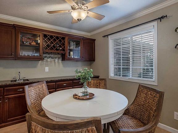 Updated 3 bedroom, 2 bathroom, 1794 sqft home with family room or guest suite. Upon arrival notice the spacious lawn with mature landscaping. As you enter through the french doors to the warm family room notice the custom shiplap walls. The dining room boasts a wet bar with tons of storage and leads into the open concept kitchen featuring with large breakfast bar. The living room feels nice and open with floor to ceiling windows, a brick fireplace and beautiful wood laminate floors. Down the hall you will find an office with built in desk and cabinets, the ultimate home office hideaway! The master suite has french doors that lead to a covered patio. The ensuite bathroom is updated with a dual vanity sink and a stall shower. The guest bathroom connects to the hall and kitchen through the laundry area and is completely renovated with subway tile and granite counters. Outside you will find a large covered patio and bar with built in refrigerator. Contact our team to schedule a showing!