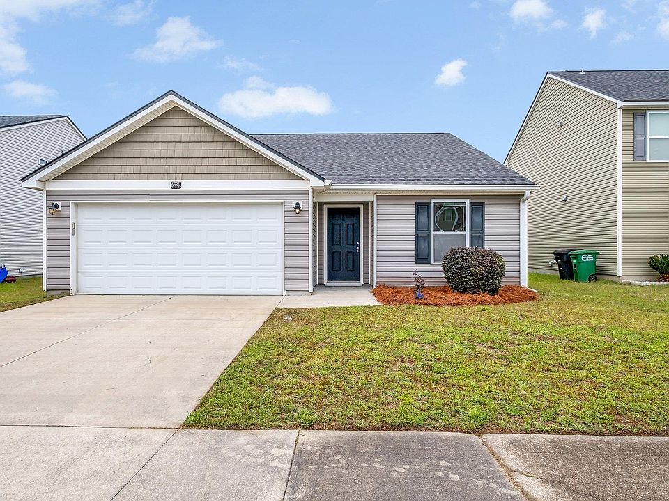 Welcome to this beautiful 3-bedroom, 2-bathroom home in the desirable Rivers Landing community! Built in 2017, this well-maintained home features an inviting open floor plan with vaulted ceilings, creating a spacious feel. The private primary suite offers a peaceful retreat with a walk-in closet and en-suite bath. The eat-in kitchen is a chef’s delight, boasting stainless steel appliances, ample counter space, and a cozy dining area. Enjoy seamless indoor-outdoor living with a fenced backyard, perfect for entertaining, pets, or relaxing evenings. Located within convenient access to shopping, dining, and major highways, this home is move-in ready and waiting for you! Buyer to verify all measurements.