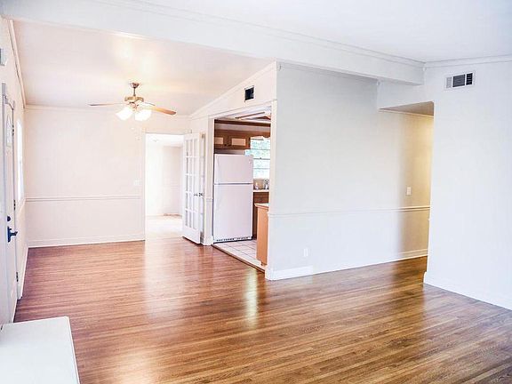 This 1200 sq foot house hard finished wood floors throughout. It has an open floor plan with the kitchen opening in to the beautiful living area, also has inside W/D hookups, one full bath, and three bedrooms with fantastic storage. It has a spacious layout and great flow. There is a large backyard and mature trees.