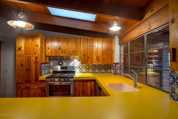 Beautiful burnt adobe in Harold Bell Wright Estates. Early work for designer Tom Gist, a significant Tucson icon. Recently updated with new kitchen oven/stove, dishwasher, sink and faucet, and banana HI-MACS solid surface counter, wood refinished on cupboards, front door was put back to original design with inviting front portico back as intended. Giant manicured lot out front with natural creosote desert and room for pool out back still. New bathrooms, restored cement flooring with concrete overlay and sealer, and a big open great room. Screened-in porch adds a massive amount more of living space to enjoy. Bonus office and cowboy bar. With Historic Status, tax credit will be almost 50% less in 2015.
