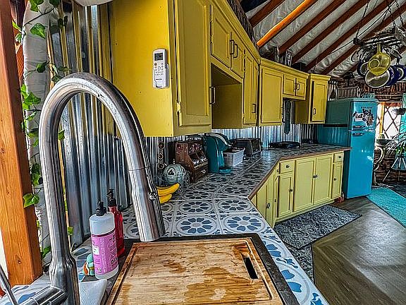 Priced to sell. Here is the perfect turn key unique property for any outdoor enthusiast and or investors looking to add a unique home outside of Joshua tree national park to there portfolio. Welcome to the glamping experience of your dreams. This cozy yurt is located just 7 miles outside of awe-inspiring Joshua Tree National Park, with open mountain views of Rattle Snake Canyon. Surrounded by BLM land, and OHV trails. This is the perfect spot to bring your dirt bikes, side by sides, all the toys with plenty of parking space. Let the stars take your breath away as this spot is extra dark and perfect for stargazing. On moonless nights you can capture the milky way easily through a phone camera. This yurt was built with love and keeping the environment in mind. It runs completely off solar, and HomeBioGas. As soon as you enter you feel the yurt relaxed and cozy vibe. Some have even described it as magical. With incredible vaulted ceilings and a center piece dome that allows you to view the stars while laying in bed. You really get the full Tarzan experience when you climb the stairs to the bedroom loft that over looks the entire yurt below. You can cozy up by the fire with the pellet stove, or enjoy your morning coffee watching the sun peak over the desert mountains. The yurt is 30 ft diameter, 706 sq ft. equipped with bedroom loft, bathtub, Homebiogas toilet, sink, refrigerator, air fryer/toaster oven, Blackstone outdoor grill, TV, video games, coffee makers, stock tank pool, great wifi. Located a short driving distance from downtown, and within walking distance of the Joshua Tree Music Festival. Our neighbors also offer archery lesson you can book online. Kitchen: The kitchen is fully stocked for all your cooking, baking, roasting, bbqing, needs. Foodies will appreciate! Equipped with lots of wrap around counter space. Bedroom Loft: Drift away in your tree house loft while gazing at the stars through the ceiling window dome. Along with the upstairs loft we have one reclining couch and a futon that lays completely flat that would sleep little ones perfectly. Living Room Space: Let movie and game night commence! With reclining couch, papasan chair, you can settle in next to the fire while watching your favorite shows. Bathroom: Relax after a long desert hike in the freestanding tub that hugs your body as you draw your bubble bath. Kick back and enjoy a glass of wine as you unwind in this spacious tub that can fit two. Perfect for those romantic evenings. We use a Homebiogas toilet with bidet (no flushing of paper) this toilet is the same as any other toilet only you pump a handle to flush. Enjoy the bathroom closet space and hang all of your outfits of the day! Don't forget about the full length mirror for outfit checks! Speaking of outfits we have a small washing machine that you just drop the back hose to drain into the bathtub and use plant safe detergents. We do not have a dryer however but do have an indoor clothes line. You would be surprised how fast things dry in the natural desert air. Outdoor: Take a dip and cool off in your stock tank pool while you kick back relax and watch the sunset. We have a fully fenced in yard for furry friends to stay safe from the coyotes. Bring your dirt bikes, side by sides, e-bikes, this is the perfect open space surrounded by BLM land with marked OHV/Bike Trails. the flat dry lake bed is also a great place for little ones to learn to ride.