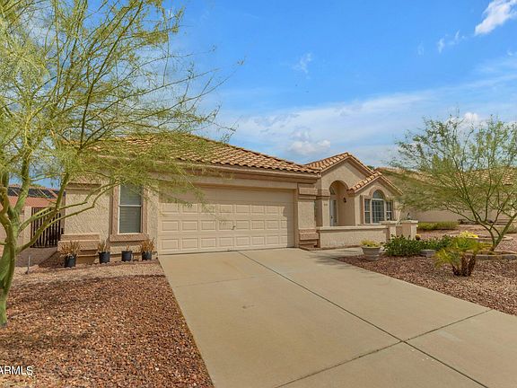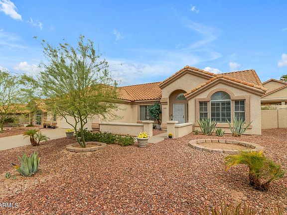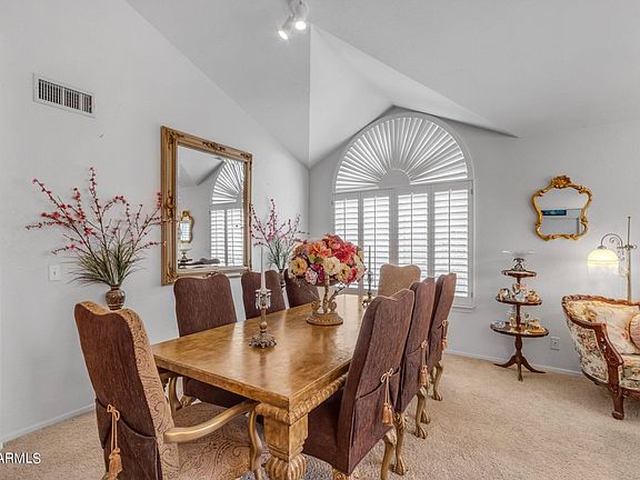 Exceptional single-story 3 bedroom, 2 bath, and a spacious 2.5 car garage. Conveniently situated near the 202 freeway, shopping, and dining, it offers a fantastic location without a HOA. The gourmet kitchen, features an island that doubles as a breakfast bar, granite countertops, stainless steel appliances and custom maple cabinets. Custom wood shutters add a touch of elegance, throughout the home. Primary suite welcomes you with French door entry with double sinks, a separate tub and shower, and a spacious walk-in closet. Vaulted ceilings enhance the open and spacious feeling in the living areas, and maple cabinets can be found in both bathrooms, adding to the overall sophistication. For outdoor relaxation, the extended back patio is where you can savor the wonderful AZ weather