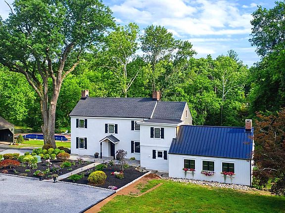 Hidden down a private road is The Eastburn Reeder Estate, a secluded compound with history dating back to the 1700s. The farmhouse was one of several former residences' of Mr.Reeder, a prominent dairy farmer & land owner in the Solebury community. Fast forward to the 1980s when the estate was converted into "The New Hope Tennis Country Club"- a place where many locals still reminisce of "the good ol' days". Today, after an extensive gut renovation, this historic property has not only come back to life, it has come back to market. Upon entering the farmhouse prepare to be wowed by the newly refinished hardwood flooring, exposed beams and original stone walls. The authentic details of this farmhouse have been carefully updated with modern finishes. Oversized Mercer tiles decorate two mirroring fireplaces which create a balanced Feng Shui atmosphere. The living room windows offer scenic views of the wooded rear yard and pool. Moving into the fully equipped kitchen you will find brand new stainless steel appliances, new marble flooring and refinished cabinets with generous storage space. Off the kitchen is the oversized family room which has brick flooring, fireplace and glass French doors leading out to the back patio. On the second level are three bedrooms, each of which are freshly painted and showcase original hand hewn beams. New carpeting and skylights enhance the modern finishes of the third level, making it the perfect space for an office, studio or lounge room. The Reeder Estate sits on five quiet acres, includes tennis & basketball courts and a private pool with views of original stone ruins. Not only are the modest taxes affordable, the estate is located within the highly coveted New Hope Solebury School District and just minutes from one of the best small towns in the country. With a wide array of potential uses, the "tennis club" offers a little bit of everything: history, location, charm, value and genuine beauty.