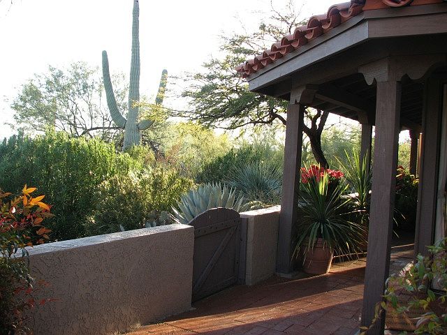Know as The Little Jewel of The Foothills Townhomes Community. This very private, one owner custom-built end unit on a spectacular view lot includes many premium upgrades - double-door front entrance, extended floor plan, light-filled center atrium leading to sunny 'Arizona Room' overlooking a uniquely lush desert landscape. Premium lot includes mature trees and saguaros with a view of city lights in the Tucson valley below. Brick floors in both the atrium and Arizona room, recessed lighting, custom Bermuda shutters. Triple-pane insulated windows. New HVAC (2018). 'First Class' and absolutely One of a Kind!
