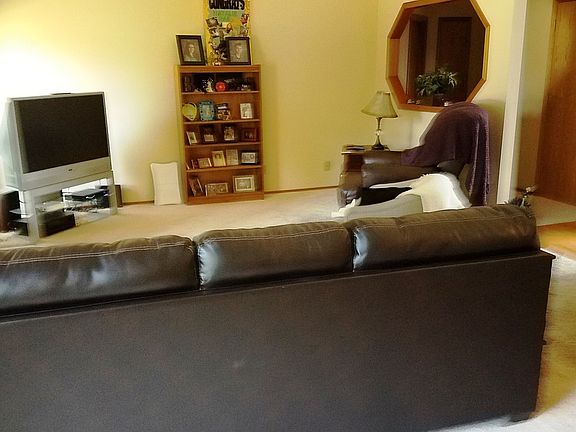 Gorgeous one level home on a flat lot. Treed lot backs to a small pasture. 3 bedroom 2 bath Family and living rooms. Home has a three car garage large driveway. Formal and informal dining areas. A huge three car garage. Easy to show.