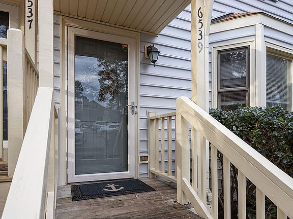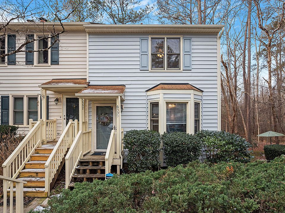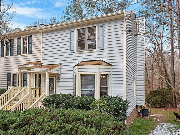 Private End Unit Townhome in Prime North Raleigh Location! Nestled minutes from I-540, I-440, and Greenway access, this updated end-unit offers the perfect blend of convenience and tranquility. Featuring real hardwood floors downstairs, fresh interior paint, and new carpet upstairs, this home is move-in ready. The layout boasts two spacious primary suites, an eat-in kitchen, and a cozy living area with a new gas fireplace. Step outside through the new sliding glass door to a private deck with serene wooded views. Enjoy community amenities like a pool, tennis courts, and basketball courts. Don't miss this gem—schedule your showing today!