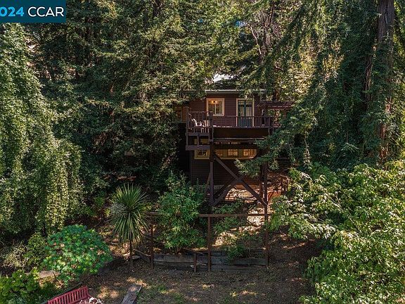 Come experience the magic of this Montclair treasure and make it your own. The log cabin harmonizes seamlessly with the natural surroundings, inviting you to step into a world where old-world charm meets modern comfort. The rustic, cozy living/dining room has preserved the cabin's historic appeal. The heart of the home, the kitchen serves as a sanctuary to unleash culinary creativity whether entertaining guests or enjoying a quiet meal. The entry-level bedroom is the perfect sanctuary for rest or stepping outside to enjoy a secluded dip into the outdoor covered spa. For those who seek a space to work a charming office awaits. There is a spacious primary suite, offering a private retreat where you can unwind and rejuvenate amidst the tranquility of nature. A detached studio/garage with endless possibilities whether you envision a home office, an artist's studio or more. The large lot has redwoods, fruit trees a chicken coop and is a place to bask in the beauty of nature's embrace. Conveniently located close to Montclair Village, top-rated Thornhill Elementary, Highway 13 & 24 this log cabin represents more than just a home; it embodies a lifestyle, a timeless retreat where history and modernity intertwine, where nature's beauty surrounds you. Welcome home.