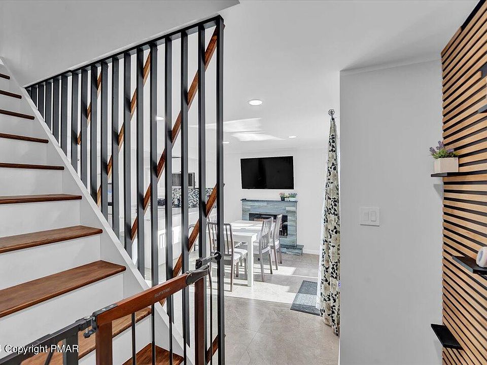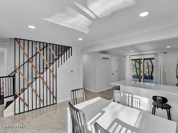 QUALITY craftsmanship with a Unique Style This is not your typical Cookie Cutter home. Perks you don't get everywhere or often. All newly designed and renovated Head to Toe! 8 Split Cool and Heat Units. HEATED flooring on 1st floor and part upstairs for those COLD Tobyhanna winters. Appliances all newer 1 year old. Oven never used! WIFI throughout the home. Contiguous Outside deck on ground level starts in front continues to side, of home, and ends in back. Large deck outside living room on 2nd floor. Huge ''two'' family rooms. One with new hot tub. Stylish modern design on front of home and on interior entry. Vacant lot next door owned by the community! If you want to stand out from the crowd, please call to schedule an appointment. Some furnishings can stay!