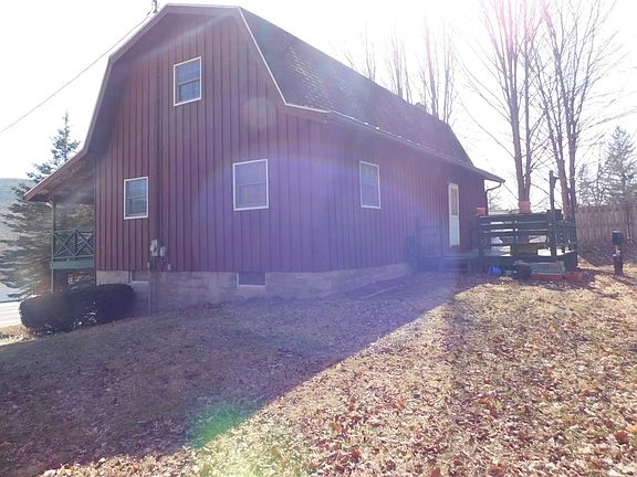 This is a very unique Contemporary home close to Oneonta and Cooperstown. Easy access to Interstate 88 and the baseball camps. The interior of the home features a gambrel ceiling and open floor plan with the living room and dining room. Gleaming hardwood floors and woodmode fully applianced kitchen with lots of cabinets and work space. 2 bedrooms and a full bathroom on the first floor. The master bedroom loft area features a tongue and groove wood ceiling, wood floor andlots of closet space and storage. Family room in basement has carpeting and an exterior door for easy access to the outside.There is a huge detached 2 car garage with storage above and furnace, and additional 1 car garage.