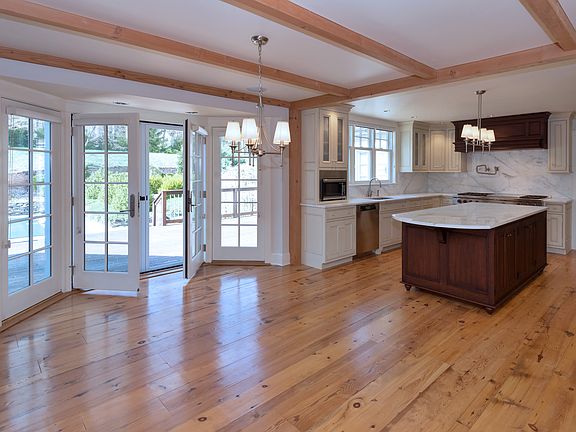 An elegant curved driveway lined with beautiful Bartlett pear trees & hand cut Belgium block with white stone leads to this gorgeous oasis set back far off the road. Located in the heart of Solebury, this home has been refurbished, rebuilt and remastered in every way shape and form with the utmost care and precision using only the finest materials and mechanicals one can buy! The supreme craftsmanship is evident having a beautiful stone and clapboard exterior with a new cedar roof. A slate pathway guides you to the front entrance portico with flanking columns, intricate trim work and a slate porch. A refined center hall with a dramatic open stairway creates a grand entrance. Hardwood flooring throughout the home with all custom moldings and woodworking showcase the high end workmanship throughout the home. On your right sits a massive formal living room with a wood burning fireplace and double French doors leading out onto a sweet patio flanked by two matching built-in corner cupboards. Ahead, is a considerable family room having a cathedral ceiling, skylights, large stone gas or wood burning fireplace with an impressive wooden mantle and hearth. Surrounded by built-in shelving and cabinetry along with a double French door leading out onto the rear deck is a perfect place to entertain guests. Adjacent to the formal dining room and family room is the extravagant kitchen featuring only the best stainless appliances such as the commercial grade 8 burner Wolf range and custom cherry hood with a swing out pot filler faucet, gorgeous Subzero refrigerator, stainless dishwasher, wine fridge, built-in microwave oven, farm sink, stunning marble counter tops and back splash, William Draper custom cherry cabinetry, exposed stone wall, radiant heated hickory wood flooring, and a wall of French doors leading out onto the sweeping IPE deck. The sizable walk-in pantry with custom shelving and ribbed glass door along with the sweet barn door side entrance with a covered porch adds character and charm. Two powder rooms, the laundry room with an outside doorway, the entrance to the garage and full basement complete, the first level. An open hallway leads to the generous main bedroom with a lovely sitting/library area, a huge walk-in closet and dressing room lead into the most luxurious en-suite bath enveloped with Carrara marble counters, flooring and shower is beyond beauty! A freestanding soaking tub sits beneath an arched window, two sinks, hidden mirrored cabinets, radiant heated marble flooring and a cathedral ceiling is all a stunning example of fine workmanship. Three additional roomy bedrooms and two full baths complete the 2nd level. The professionally landscaped yard, custom dry stack stone walls were strategically placed when customizing the landscaping and the in-ground pool and spa area which offers a tranquil place to relax and entertain. All within minutes to the historic downtown areas of New Hope and Lambertville with the many award winning restaurants, shops and galleries they have to offer. Easy commute into Philadelphia and New York with easy access to public transportation into the city. This home is a must see!