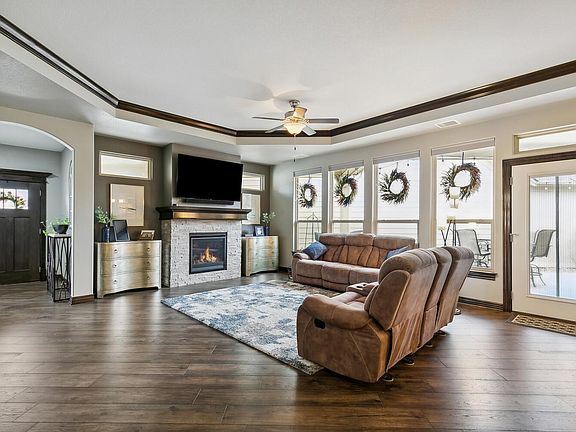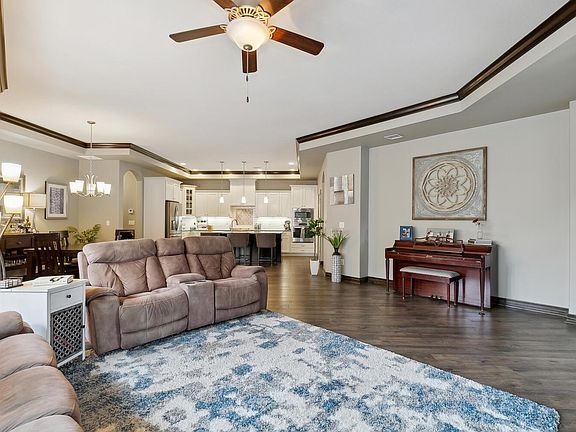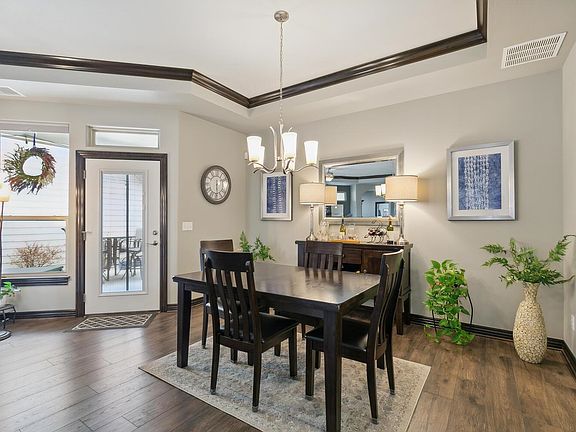 Join the active adult community of Estancia Courtyards with this beautiful spacious patio home! One of the most popular floor plans of the community features a large open great room where you can easily entertain from the big kitchen that views right into the great room, dining, and private outdoor courtyard. The den/office at the front of the home has lots of windows for natural light and is large enough to be a 3rd bedroom. The owner's suite is private on the back of the home with recessed lighting within the crown molding of the tray ceiling. The owner's suite has its own sitting room next to the bedroom which can be used for so many things - from a TV room, craft room, office, grandkids playroom, etc. The sitting room opens both to the center private courtyard or the fenced backyard that backs up to a berm with native grasses and landscaping. The outdoor spaces are very private and set up perfectly if you have a dog. The owner's bath is large and has a zero-entry custom tile shower. The oversized garage has space for storage and a storm shelter included. Enjoy a large laundry room with lots of storage, countertop for folding, and wash sink. HOA dues cover landscape/sprinkler system maintenance with sprinklers on central irrigation wells. Also covered in HOA dues are trash service, snow removal, exterior building maintenance (excluding roof, windows, doors) and access to our amazing copyrighted, one-of-a-kind clubhouse. Enjoy the pickleball courts, outdoor heated saltwater pool, and inside the clubhouse is a large room for socializing complete with kitchen and buffet space, smaller card/game room, restrooms, and exercise room complete with resistance and cardio equipment --- all this exclusive to our courtyard homeowners and their guests.