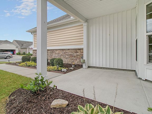 Move-in ready popular Taft Street model built in 2016 in Charleston's premier active adult community, Del Webb Cane Bay! Open-concept living featuring 3 bedrooms, 3 baths, a den/office, loft/bonus room, screened-in lanai with vinyl windows, and oversized garage with four foot extension upgrade. As you approach the home you will notice a front porch and extra stone detail on the exterior. The kitchen features 36'' staggered maple cabinets with crown molding, granite countertops with a large center island, and pendant and recessed lighting. Just off the kitchen, a screened-in lanai that leads onto a patio with wooded views, perfect for entertaining friends and family! Spacious owners suite highlighted with a tray ceiling and complete with dual sink vanity with granite countertops,........walk-in shower, and tile flooring. Hardwood flooring in the foyer, kitchen, great room, dining room, den/office, primary bedroom, and hallways. Tile flooring and granite countertops in all bathrooms. The second bedroom and bathroom downstairs is tucked down a separate hallway separate from the primary suite. Upstairs you will find a completed loft with bedroom, bathroom, and additional walk-in closet. The loft area is ideal for a media room, man cave, or additional storage. This space is also great when family and friends visit. Additional features include; garage sink, recessed can lighting, framed mirrors in the bathrooms, window treatments, attached lighting, ceiling fans, and all appliances including refrigerator and washer/dryer convey. You will not be disappointed with this one, please book your showing today!