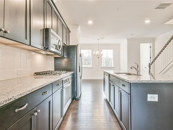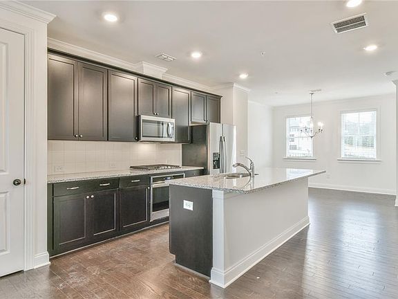 Beautiful new upgraded executive 3 story 3 bedroom 3.5 bathroom townhome in the highly desired Aria North with resort style amenities including 2 swimming pools, luxurious lubhouse, Fitness Center, and a 12-acre park! Located minutes from the interstate and walking distance to Aria Village for dining and shopping! Gorgeous open floor plan with plenty of natural light. Elegant hardwood floors throughout and plush carpet in the bedrooms. Perfect floorpan that offers a bedroom and private bathroom on the 1st floor that is also the perfect work-from-home office space. The second level offers a large den with a view and access to a cozy porch, white chef's kitchen and a spacious dining room. The kitchen has stainless steel appliances and a smart Samsung refrigerator. The spacious master suite is located on the 3rd level and has great natural light, large walk-in shower as well as a wonderful walk-in closet! The large second bedroom with ensuite bathroom and large closet is down the hall from the master. The laundry room has brand new washer/dryer and is conveniently located in between the bedrooms.The home is completely wired and one phone call away from being a total smart home. This is a spectacular opportunity to live in the exclusive Aria North and experience all the conveniences the community and Sandy Springs has to offer! This unit is a true gem! *this home is not furnished, furnished model home pictures are for furniture placement ideas tenant pays for all utilities except for garbage