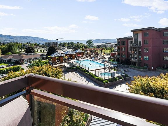 This rarely offered top-floor Loft with lake views is waiting for you to call it home! Overlooking the pool, this 2 bedroom, 2 bathroom unit is move-in ready. With 20 ft vaulted ceilings, in-suite laundry, walk-in closet, quartz counters & wood shaker cabinets throughout, it's easy to see the value. The strata fees cover utilities, heat, and air-conditioning costs! The large windows allow you to enjoy ample natural light and BBQ on your patio while taking in the views. Amenities include a gym, pool, hot tub, secure parking, amazing coffee shop, restaurant & spin studio! Located in the heart of the Mission you are a short drive, walk or bike ride to beaches, shopping, H20 pool & fitness centre, sports fields, dining, pubs, world-class wineries & more!