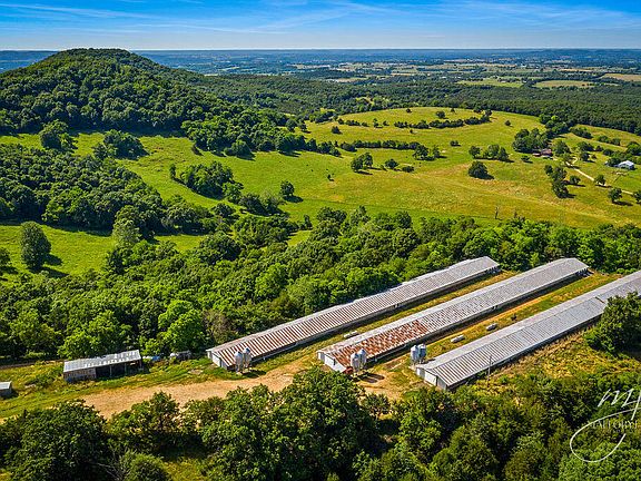 Nice Cattle & Poultry Farm in the Beautiful Ozarks! Located just a couple miles outside of Berryville AR but extremely private end of the road, 172 acres M/L of mostly open land with approx. 25-30 acres of trees, cross fenced, springs, several ponds, drive down the drive that opens up to a valley with home about in the middle. Bring your horses with barn and roping arena, cattle working pens, several outbuildings for equipment, many great building sites with views, close to Table Rock Lake, Beaver Lake, Kings River, and Buffalo River. 45 minutes to Branson MO. House is approx. 1,856 sq.ft. 3BR, 2BA, gas fireplace, central heat & air, and has it's own well. Chicken houses are cool cell tunnel houses with computers, generator, 2 wells, and stacking shed, last birds sold in March of 2021. Pr