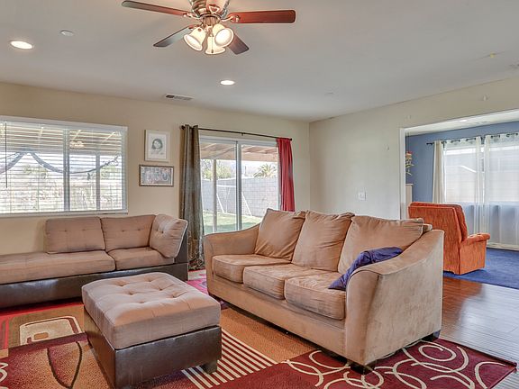 Take a look at this beautiful and spacious single story recently built with low taxes and no HOA. It offers 5 bedrooms and 2 baths in an large 10,000+ sq. ft. lot, a 2 car garage, driveway gate for extra privacy and RV parking. Open floor plan with living room, kitchen and nook that could be used as dining area as well. The gourmet kitchen boasts granite counter tops, tile backsplash, and lots of cabinet space. The spacious master bedroom features an on-suite master bath.The oversized backyard offers a full patio cover and it's perfect for entertainment with beautiful views of the mountains in the distance. There is concrete all around the house and a spacious shed as well. All conveniently located close to shopping, dining, entertainment, schools, parks, and easy access to the I-10 & 60 freeways.