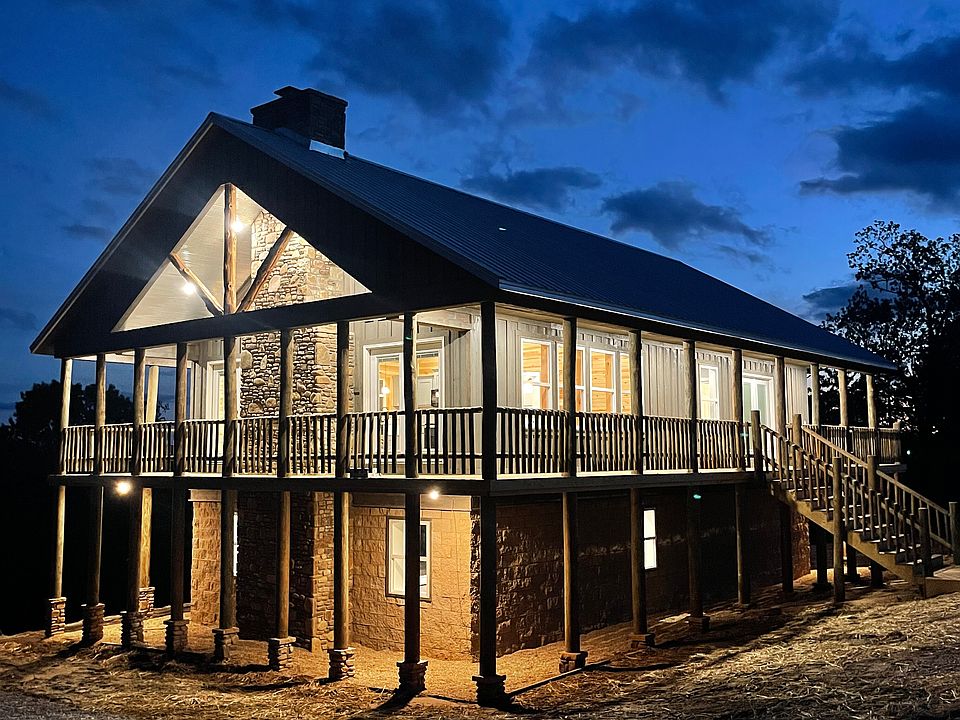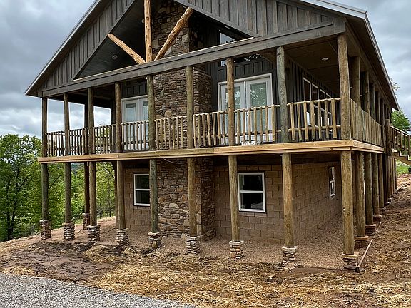 EAGLE ROOST LODGE NEW PRICE/NEW CONSTRUCTION For those of you looking for that beautiful lodge style home in the Ozarks, look no further---welcome to Eagle Roost Lodge! This is a 2408 square feet newly constructed, custom mountain home situated on 5.6 acres in an upscale neighborhood. Enjoy sensational views from the 750 square feet of wrap-around porches. Looking northward you can see Norfork Dam and the lake beyond, while to the south one can enjoy viewing the magnificent Ozark Mountains. A large, cleared area out back offers a perfect setting for watching wildlife or setting up a fire pit. Also, an extensive trail system has been cleared for those who enjoy a simple walk in the woods. The Grill at Whispering Woods offers fine dining with its dynamic ambiance only 1.5 miles away. You're also less than five miles from Quarry Marina and Norfork River public launch. The quaint little historical town of Norfork is located only five scenic miles away as well. Only 17 miles away, Mountain Home offers a hospital and other medical facilities, along with shopping, dining, or other needed services. Call or text us today for a tour of this newly constructed spectacular lodge home. We look forward to showing it to you.