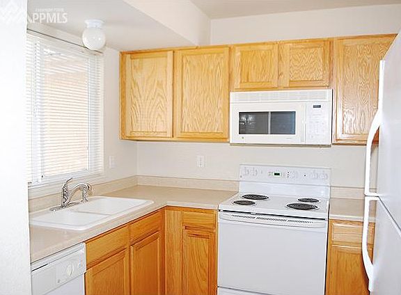 WATCH THE DEER AND WILDLIFE as you back to Greenbelt joining the Garden of the Gods Fabulous Pleasant Valley location. Brand New carpet, near New paint and wood type floors upgrade this stucco 2 story. All kitchen appliances stay and so does washer/dryer. 2 bedroom suites with private baths and big closets. Front and rear patios, white colonist trim package with designer color paint. Custom blinds throughout. Great kitchen and spacious laundry room too!!
