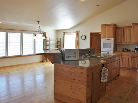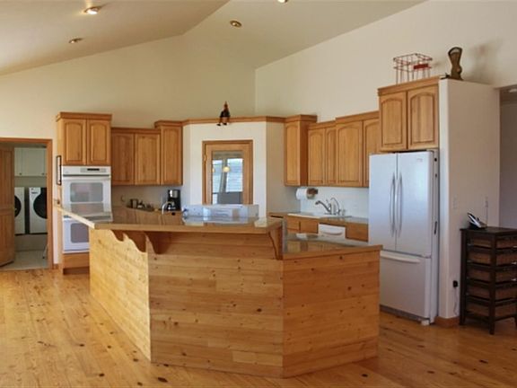 Stunning panoramic views on this ranch with custom 4 BR 3 BA rambler! Enormous great room features hickory cabinets and floors! Huge kitchen boasts double ovens, corner pantry, and oversized island with secondary sink! Large master bedroom offers walk out to covered deck, walk-in closet, and private bathroom with tile flooring, dual sinks, corner jetted tub, and shower with dual shower heads! Ranch offers 40x60 shop, 25x30 insulated shop, smoke house, livestock pens, fruit trees, duck pond! A must to see!