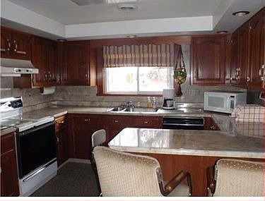 Large rooms in this 2 story home, with first floor laundry, lots of storage, covered front porch , beautiful yard with fruit trees, coy pond, underground fruit cellar.black top drivay