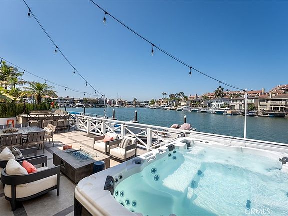 Introducing 654 Harbor Island Drive - a Waterfront Haven in Newport Beach, CA. This 4,643 sqft masterpiece, beautifully upgraded all throughout, presents an entertainer's delight on the water, perfectly tailored for modern waterside living.Boasting 4 bedrooms plus an office and a bonus upper-level flexible area, this home offers a harmonious fusion of space and style. The first level showcases an expansive open-concept waterfront living room graced with La Cantina folding doors, seamlessly melding indoor and outdoor realms. The kitchen, living room, and bar converge effortlessly, creating an inviting ambiance.A secluded office doubles as a flexible bedroom, adding versatility to the layout. Noteworthy recent upgrades span throughout the home, encompassing flooring, bathrooms, an epoxy garage floor, a new back patio, Lutron lighting, a 400 amp electrical panel, and a fresh roof. Ascending to the upper level reveals a grand waterfront master suite with high ceilings and waterfront views. Additional offerings include a bay-facing guest rooms, a separate guest suite, an upstairs bonus room, and various interior patios the interiors with natural light. Include a bay facing bedroom, two guest rooms, a flexible bonus space, currently being utilized as an entertainment room, and a laundry room. Outside, the recently updated bayside patio and veranda span generously, offering 50 feet of captivating water frontage. Ideal for hosting, the firepit and spacious seating area set the scene for memorable gatherings. Boating aficionados will cherish the private dock accommodating two boats - up to 60 feet and 51 feet.Newport Harbor opens the door to year-round enjoyment, from sailboat regattas to electric boat rides, paddleboarding, kayaking, swimming, and the iconic Christmas boat parade. This property stands as a testament to opulent waterfront living, where elegance and leisure intertwine seamlessly.