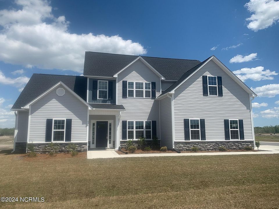 Welcome to the highly desired & popular community of Onslow Bay. Brand new construction built by Onslow County's most trusted & preferred builder, featured in Builder 100/ Top 200 Builders in the country. Onslow Bay is a hot spot, 3 miles to MCB Camp Lejeune's Piney Green gate, 14 miles to New River Air Station & minutes to area schools, shopping & dining. This beautiful neighborhood is sure to impress, complete with a clubhouse area & community pool. Welcome to the Berkley. 2920 heated square feet, 5 bedrooms 3.5 bath. Main level master bedroom. A covered porch leads into a 2-story foyer with natural lighting. A formal dining room is off the foyer. This very open floor plan is great for entertaining. Open kitchen 10 x 14, breakfast room, and family room. Kitchen features lots of cabinets, a center island, and a pantry. Stainless appliances include a smooth top range, dishwasher, and microwave. The open family room features a ceiling fan and a fireplace topped with a custom mantle. The main level master suite also has a ceiling fan and a deluxe master bath with walk in closet. The master bath has a separate tub and shower, a double vanity with custom mirror and a grand walk-in closet. 4 spacious bedrooms on the second floor, one having a charming sitting area. 2 full bathrooms upstairs with an additional half bath on the main level. The Berkley is a much see floor plan complete with a 2-car garage. Call Today! NOTE: Floor plan renderings are similar and solely representational. Measurements, elevations, and specs may vary in final construction. Limited selections for buyer to choose. Call L/A to verify.