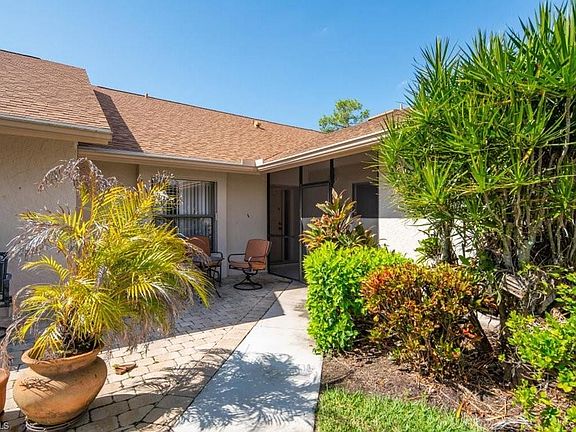 It's all about the gorgeous water and golf course views! Bring your best decorating ideas for this 2 BR 2BA villa with two car attached garage. New roof and skylights, 2017. Updated guest bath 2017, new comfort level toilets both baths. New water heater 2017, new garbage disposal 2020. Newer washer and dryer. Granite counter in kitchen. 27 Holes Arthur Hills championship golf with no initiation fee! Clubhouse with full service restaurant, grill room for casual dining, fitness facility, library, Pro Shop, putting greens, practice sand trap area, bocce, pickleball, 3 Har-Tru tennis courts and lap pool. 5 miles from downtown 5th Ave. shopping, dining, live theater, art galleries and pristine Gulf of Mexico beaches. 25 min. from Regional SW FL airport. Easy access to I-75 North and South. Close to Marco Island.