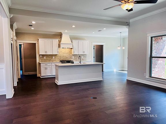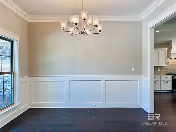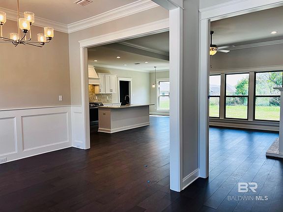 The popular PECAN floorplan by TRULAND HOMES is waiting for you to make it your own. Experience the casual luxury as you enter the foyer though 8 ft Mahogany wood stained doors. The main living areas and primary owner's suite have beautiful wood floors. No detail has been overlooked with an abundance of custom mill work including crown molding, board and batten wall detail, fully cased large windows, designer door frames and a lovely brick/wood fireplace surround and mantel. Open, light and bright. The layout is an entertainer's dream with a formal dining room that opens to the great room complete with a gas fireplace. The chef’s kitchen boasts beautiful cabinetry, gorgeous quartz counters, large work island, gas range with a designer hood, built in microwave and an enormous walk-in pantry. In addition to the formal dining room there is additional dining in the breakfast area or at the counter bar, making the layout perfect for large gatherings. The owner's suite is spacious accommodating a king size bed with plenty of room for side tables, chest of drawers and a sitting area. The ensuite bath has a free-standing soaking tub, tiled, zero entry shower and DUAL private closets with wood shelving. There are three additional large guest bedrooms and two full baths. There is plenty of storage too! In addition to a hall coat closet there is a closet in the large utility room and a closet in the hall entrance from the garage complete with a built-in wood bench. This home is built to Gold Fortified specifications, has a Builder warranty, smart home features including a ring door bell and security camera. This community is golf cart accessible to Downtown Fairhope and all it offers. Estimated completion March 2024. Seller will contribute up to $3,000 in closing costs when financing through DHI Mortgage.