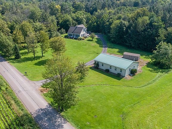 Cute as a button inside and out! This cape cod style home offers a peaceful wooded/open setting on a country road with paved driveway. Come inside and see this well-maintained home offering a comfortable living room with propane stove formal dining room, easy flowing kitchen. 2 car garage with an enclosed breezeway to the laundry and bath. work from home with an office with a view. Upper floor offers 3 bedrooms and a newly updated dream bathroom. For the man in the family enjoy the heated 30 x 50 building all set up for a small business or man cave and a 20 x 12 shed for the toys. 11.96 acres