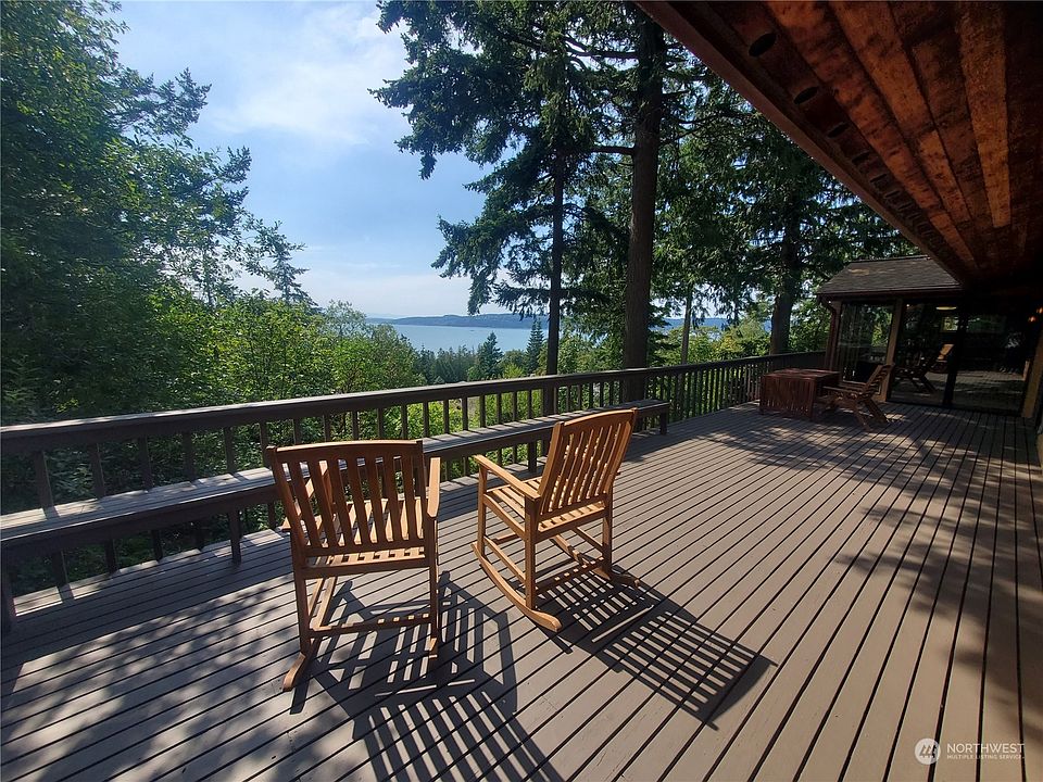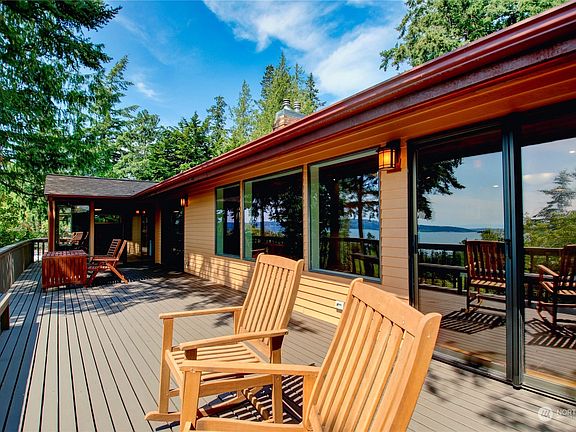 Private retreat with incredible views of Skagit Bay & the Olympic Mountains from almost every room. Quality renovations and upgrades throughout this impressive home. Vaulted ceilings, skylights & oversized windows make this home feel open & spacious. Beautiful hardwood, bamboo & cork floors highlight clean lines & artistic details throughout. Relax on the 500sq.ft deck or in the renovated sunroom off the master bedroom and enjoy the nightly sunset show. Discover the walk-in jetted soaking tub, whole home generator & surge protector, XL5 Thermador cooktop & more! The lower level offers a fully functioning ADU with private entrance and patio. Enjoy all of Shelter Bay's many amenities: pickleball, tennis, pool, playground, marina & more.
