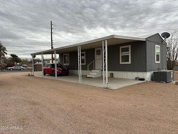 NO HOA! Cute 1 BR manufactured home on large lot. Recent updates in recent years to include new flooring throughout, faux blinds, baseboards, updated kitchen cabinets w quartz countertops and back splash, stainless appliances, newer AC, partial block privacy wall, front deck and mountain views. Convenient stackable washer/dryer. On the carport side near the handy storage shed is an RV hookup. Front gate works on electric fob and there is an easement on the south side for neighbors in the back and to bring in your ''toys''since there is plenty of room or add a future garage.