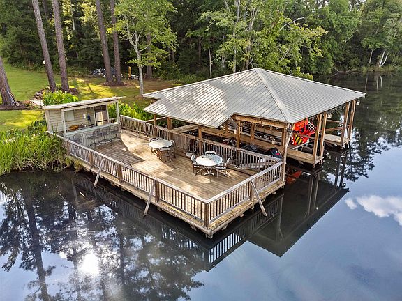 TRULY A DREAM PROPERTY! THIS STUNNING 6 BEDROOM / 6.5 BATH 2 ACRE ESTATE LAKE FRONT HOME OFFERS AN ABUNDANCE OF ULTIMATE LIVING SPACE INSIDE AND OUT! Each bedroom has en suite full bath - 6 suites!! If you are looking for a home that INVITES family and friends to COME AND STAY.... THIS IS YOUR HOME! NEWER CUSTOM CONSTRUCTION - BUILDER'S FOREVER HOME -SUPREME QUALITY IN EVERY DETAIL - DETAILED TRIMWORK, WOOD CEILINGS HEART PINE BEAMS, PINE WALLS, INSULATION IN ALL WALLS/CEILINGS, LOW-E WINDOWS (dirt cheap power bills), LUX VINYL THROUGOUT home give uniform beauty and durability. GOURMET KITCHEN - GAS COOKTOP, DOUBLE OVENS, CABINETS GALORE! PRIMARY SUITE ON MAIN WITH POSH BATHROOM - SOAKING TUB AND OVERSIZED SHOWER - DUAL CLOSETS. Soooo many details.... Such quality throughout..... Almost every room in the home overlooks beautiful Lake Sinclair! Stacked stone family room fireplace, 12 foot sliding door opens to lakeside deck. Deck has water feature and additional outdoor gas fireplace. Impossible to sum up the incredible detail, quality and love that has gone into this home. BUT WAIT! THE MAN DEN !! LOCATED ON THE MAIN LEVEL, THIS MIGHT BE THE BEST ROOM IN THE HOUSE! Beautiful HEART PINE envelopes this room and sets it apart and the FUN SPOT! 3rd fireplace located here (wood burning), Awesome BAR ready to serve up some fun! All with wall of windows overlooking the lake! Outdoor space seals the deal - 2 acres of pure paradise. Established landscaping, double boathouse with addtl bar area. Sandy Beach. 8 PERSON LAKESIDE SWINGSET FIT FOR ADULTS! Fee simple