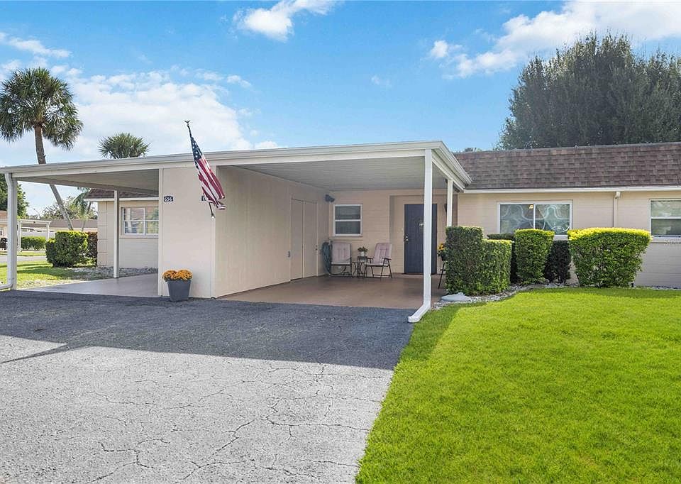 This fantastic 2-bedroom, 2-bathroom home in the sought-after 55+ Park Acre Estate community is bound to generate significant interest. It comes fully furnished and move-in ready, boasting a highly practical layout, recently updated kitchen and bathrooms, energy-efficient hurricane windows installed just 3 years ago, a UV-sanitized AC unit from 2019, and a host of other attractive features. The roof and gutters were both replaced less than 4 years ago, and the dividing wall between the kitchen and living areas has been thoughtfully removed, creating an ideal space for entertaining. Step out the back door into a beautifully maintained courtyard, overseen by the diligent association. Plus, you'll have the convenience of an attached carport and a private laundry/storage room just steps from your front door. Park Acres is a highly regarded community thanks to its remarkably low condo fees, which include cable and internet, as well as a heated pool just a few doors down from this unit. Don't miss out – schedule your showing today to discover firsthand why so many residents consider this community their own slice of paradise!"