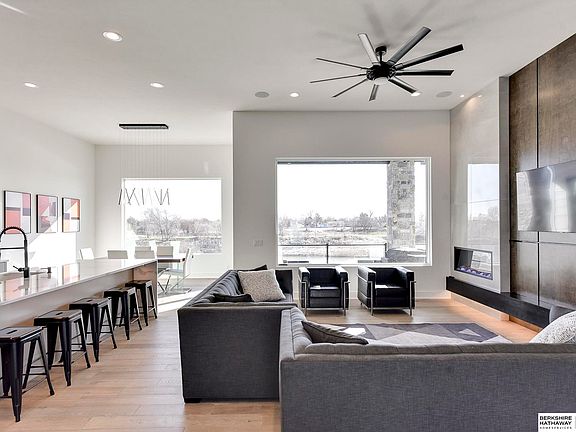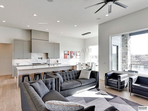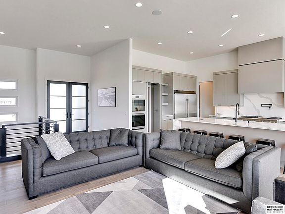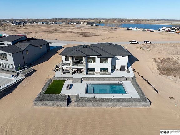 Discover a gem in Sandy Pointe, Nebraska's coveted lake community. This expansive lake house boasts generous bedrooms, an extensive garage, ample storage, and vast entertainment space. The kitchen is a chef's dream with a large walk-in pantry, lofty ceilings, and picturesque water views from the living room. The walkout basement features additional garage storage, a sunken bar, a golf simulator, and a sprawling entertainment area. With 4 bedrooms (2 up, 2 down), the backyard oasis offers everything from a pool and fire pit to a beach, fishing, and boating, fulfilling every desire for lakefront living.