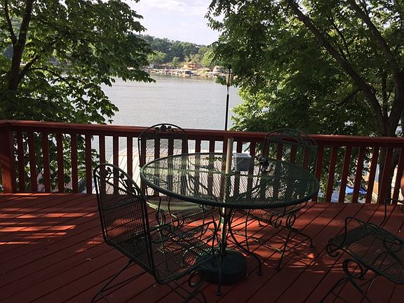 Charming 2 bedroom home located at the 45 Mile Marker on the beautiful Lake of the Ozarks! Enjoy all the benefits of lakefront home ownership on a very economical budget. Home features large shaded decks on both levels, washer, dryer, storage shed and storage boxes, and 2 baths. Level parking right beside front door. This wonderful package is totally turn key! Just bring your suit case! 2 well dock is just a few steps away and comes with boat & Sea-do hoist and swim platform. Perfect large cove location and just a few minutes from many fun things to see and do at the lake. Why buy a condo when you can have 60 feet of prime lakefront. Being sold in as is condition