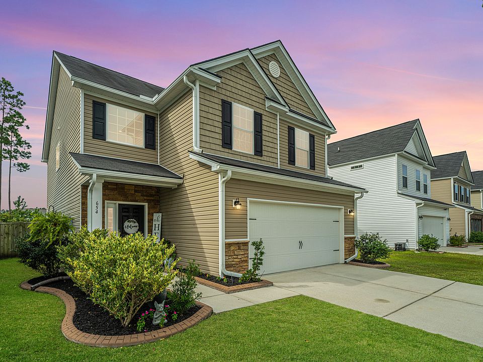Welcome to 654 Redbud Lane, located in Cane Bay Plantation! This beautiful home is situated within the desired subsection of Lindera Preserve, which boasts the most amazing and unrivaled amenities in all of Cane Bay. 654 Redbud Lane is also in a section of Lindera Preserve that is zoned for the Cane Bay Schools. Can we talk about the convenience of a master planned community?! You can use the miles and miles of interconnecting trails to golf cart, bike, walk to the schools, dine at the restaurants, pick up groceries at Publix, attend appointments, exercise, decompress on a nature walk, whatever fits your daily needs and heart's desire, without ever leaving the comfort of your own neighborhood...As you pull up to 654 Redbud Lane, take notice of the curb appeal-with lovely landscaping, a two-car garage, brick accented front elevation, and a covered porch. Enter the front door and you are greeted by the foyer with an expansive two-story ceiling, and a high set window, bringing in natural lighting. The wide set LVP floors are a beautiful color and are found throughout the main level. The Family room, dining area and kitchen are all open to each other, creating a warm and inviting flow throughout the main living areas-perfect for entertaining, but also as a cozy oasis for just you and your loved ones. The family room is large with a ceiling fan and is situated alongside the dining area. The dining space is currently being used as an extension of the living area, as there is also a nicely sized eat-in area off the kitchen. This provides flexibility as to what you prefer, since it can be used for either and truly works great both ways! The inclusive kitchen is the anchor to the living spaces and boasts gorgeous cream cabinetry with molding, granite counters, subway tile back splash, stainless steel appliances, built-in microwave, gas range, recessed lighting, a pantry, and an island with a breakfast bar w/overhang, for even more dining options! This is the perfect kitchen for those who love to cook and entertain, without being secluded in another room. Rounding out the main level is a powder room for guests, a storage closet, access to the garage and the kitchen eat-in area with dual windows, that overlook the backyard. Nothing like a Sunday breakfast with a cup of coffee and natural lighting. Head up the stairs to the second level and you are greeted by the loft/bonus area with a ceiling fan. This is a flexible space that can be used as a media room, office, game room, play area, or really anything that suits your wants and needs. The master bedroom is down the hall on the left. Large, with dual windows, a ceiling fan and walk in a closet, this room is the perfect space to relax after a long day. Soak away and unwind in the garden tub in the master bathroom, which also features tile flooring, a raised vanity with dual sinks, and a separate shower. There are three additional bedrooms with ceiling fans, two of which have walk-in-closets, as well as a hall bathroom with shower/tub combo & tile flooring. Rounding out the second level is a spacious storage closet and a laundry room w/tile floors and a storage shelf. The backyard is a great space for a summer barbecue or sitting around the nice and cozy firepit with friends & family in the wintertime. Fully fenced with a patio and a treed area behind the home, adding an extra layer of privacy, which is always a plus! The sellers have immaculately maintained this home, and have noted additional features including: HERS rating for energy efficiency (LOW energy bills!), gas tankless water heater, HVAC system that has been serviced yearly, gutters installed, active termite bond, and a large two car garage with built-in shelving and LED lighting. Cane Bay is a master planned, well-established golf cart community nestled in the heart of Berkeley County, with multiple neighborhoods, amenities, schools and access to nature. Enjoy the convenience of an interconnecting trail system (ride your golf cart, bike, run, jog, walk) that connects all of the communities, Cane Bay schools, Cane Bay Marketplace, and most amenities. Cane Bay is also home to the YMCA, which features a 54,000-sqft health/wellness facility as well as a 5,000 sq-ft FULL-SERVICE library and it is the "First of its kind" collaboration between a county library and a YMCA in the United States. Just inside the entryway, is a Publix anchored shopping center, with an array of businesses to suit your daily needs. Lindera Preserve is a neighborhood within Cane Bay, that offers a resort style amenities including two pools, two large green spaces for sports/recreation, multiple play parks, two large, covered pavilions, picnic area with grills and tables, well-sized dog park with separate fencing for large and small dogs, miles of walking trails and numerous ponds. Cane Bay's location is excellent and convenient. The nearest hospital is 2.9 miles, Volvo Plant Operations- 2.7 miles, I-26 access-6 miles, downtown Summerville- 9.4 miles, Boeing-20 miles, Charleston Air Force Base-18 miles and historic Downtown Charleston is only 28 miles. 654 Redbud Lane has it all-location, southern charm, convenience and is a gorgeous place to call your very own, Home, Sweet Home!