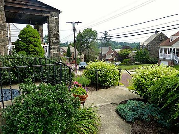 Charming stone tudor. Jr. beam construction. Beau.newer hall bath. Won. Andersen multi-pane windows. Peaked arched doorways; nat'l stained 8-panel doors; built-ins & exposed hardwood flrs. Lovely covered porch and private patio. Gorgeous, beautifully landscaped, oversized lot. Table top level rear and side yards. Easy access to elementary & middle schools - steps and path to Moffett Street abut property. Lovely!