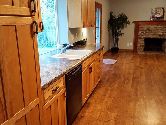 Adorable, landscaped home in great neighborhood. Large, private yard backs to wooded Park/walking trails. Vaulted, open floor plan. Many quality updates. Newer: kitchen, fixtures, furn/AC, paint, carp/pergo. Roof 7yrs. Cozy brick FP. Vaulted master suite w/WI closet/bath. Fenced yard has patio, o-size shed, pad for greenhouse. Full size 2 car garage with tons of extra storage. Sep utility room w/washer/dryer included. Great home value!