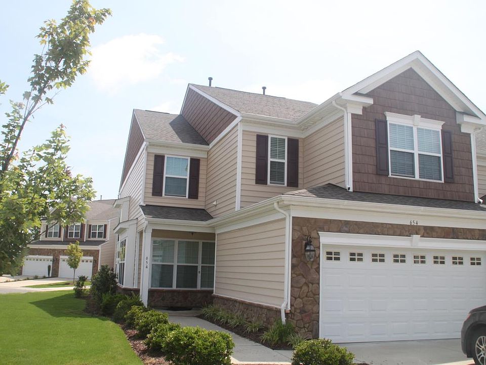 Great end unit townhome floor plan with 2-story high ceiling family room with 2 car garage, fireplace; large kitchen, lots of counterspace and cabinet, plus pantry. Stainless steel appliances, gas range with hood; granite countertops, and hardwood floor throughout. Spacious 3 bedrooms and laundry room on 2nd floor. Screen porch with patio. Community pool available. Great Wake county schools! Fridge, washer and dryer will be provided. Minutes from American Tobacco trail, UNC fitness center and Cary Baseball park. Easy commute to RTP, RDU, Hwy 55, 40 & 540, Raleigh and Durham! Owner pays for HOA. Tenant is responsible for trash, sewer, water, gas, electric. Rental insurance required. Must have a minimal credit 600. Lease term could be longer than 6 months.