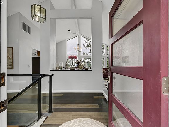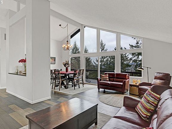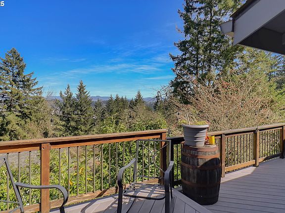Welcome to this fully remodeled home in the coveted SW Hills! Upon entering, you are greeted by a grand, living and dining area with soaring, vaulted ceilings and an expansive wall of windows that flood the space with natural light and frame stunning views! The living room offers plenty of space for seating around a modern, electric fireplace. Vaulted kitchen with newer solid wood cabinetry, granite countertops, breakfast bar and stainless-steel appliances. The kitchen seamlessly flows into the family room with a cozy wood-burning fireplace as the focal point. The lower-level features 4 bedrooms + the laundry room for convenience. Primary suite with double closets, double sinks, tile-surround walk-in shower and a slider offering direct access to the lower deck. Step outside to discover a versatile bonus room currently used as a personal gym. It could also make a great mancave or art/music studio. Double doors lead to another deck that's perfect for housing hot tub. The expansive main level deck offers plenty of space for hosting a BBQ while taking in the views.Pet owners will love the fenced and covered dog run, and peace of mind comes with a newer roof and heat pump, both replaced within the past four years. Driveway has an extra, partially covered parking space. Located in the highly sought-after South Eugene School District, this home checks all the boxes!