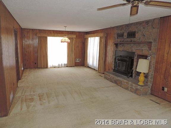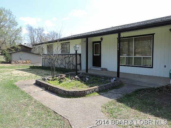 Large home centrally located on A Road in Linn Creek within the Camdenton School District. This home features several different living areas, including a large main floor family room and even bigger walkout lower level family room with tons of storage. Three bedrooms, one being a master suite with two closets, main level living that will accommodate any size family. An oversized two car tuck under garage with workshop area and a large lot that backs up to woods - allows for privacy and beautiful nature views but still close to all of the fun that that Lake of the Ozarks offers. Do not wait¦ this property is priced to sell and will not last long! Being sold as is