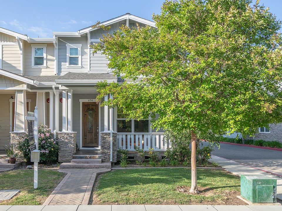 Location, location, location! Welcome to Willowgate Gardens where this bright and open end-unit town house features three bedrooms and two and a half bathrooms. At just 9 years old, this home offers many upgrades including hardwood floors, central heat and air conditioning, LED lighting and tall ceilings throughout. Upstairs is a washer, dryer and extra storage, making laundry easier! The master suite has a walk-in closet and spacious ensuite bathroom. There is a low maintenance and private patio in between the home and two car garage. Conveniently located near desirable downtown Mountain View shops, restaurants and businesses and centrally located to many large job centers with easy access to public transportation, 101 and El Camino, you wont want to miss this one!