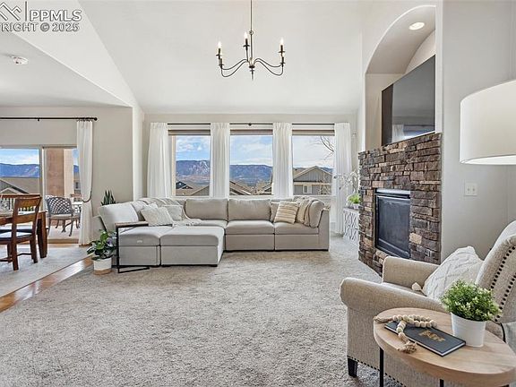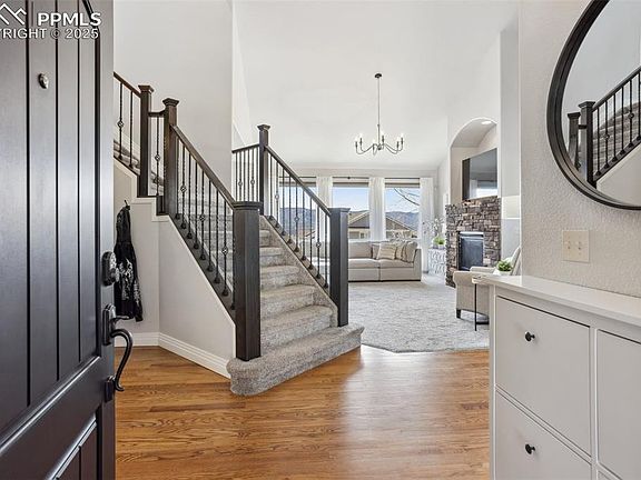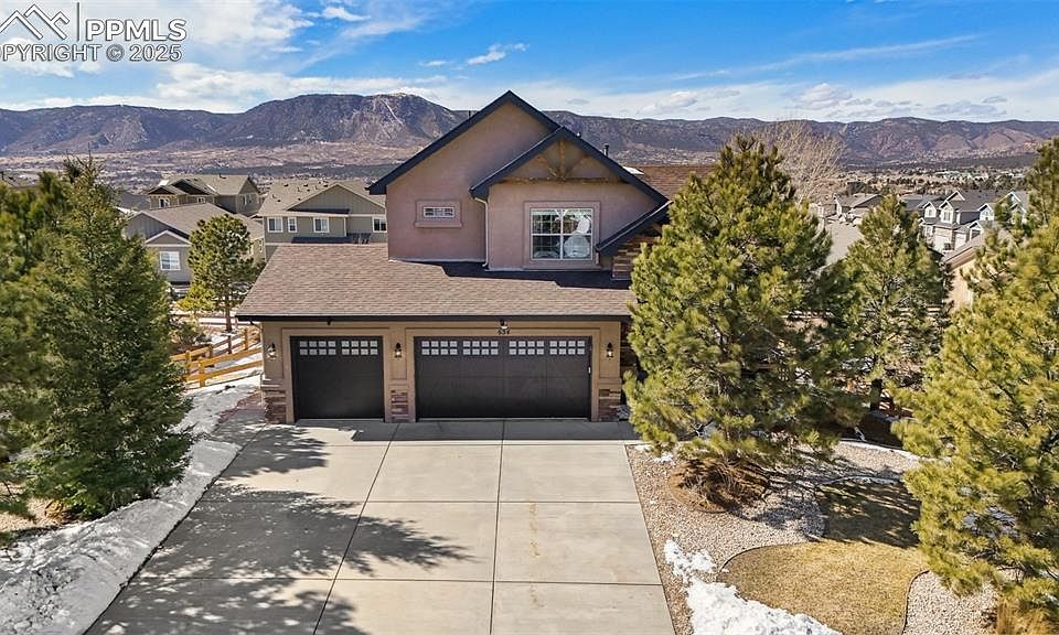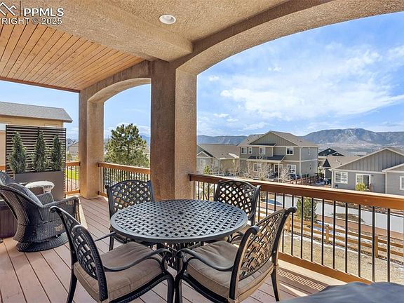 Imagine waking up to breathtaking mountain vistas, the kind that paint the sky with vibrant hues and inspire a sense of serene wonder. This isn't just a dream; it's the everyday reality of this stunning Monument, Colorado residence. Prepare to be captivated. Step inside and be greeted by stunning views as vaulted ceilings soar above, creating an airy and expansive atmosphere, perfect for both grand gatherings and cozy family nights. With 5 spacious bedrooms and 4 luxurious bathrooms, everyone will find their own personal sanctuary. The heart of the home is a chef's delight: an open and conversation friendly kitchen boasting a massive walk-in pantry that will fulfill all your storage needs. Entertain with ease in the finished basement, complete with a stylish wet bar, ideal for hosting unforgettable game nights and celebrations. Retreat to the master suite, a true haven of tranquility. Indulge in the spa-like master bath, featuring a jetted soaker tub, a separate standing shower, a private water closet, and a sprawling walk-in closet. But the true magic lies beyond the walls. Step onto the covered composite patio and let the panoramic mountain views steal your breath away. This is the perfect spot for morning coffee or evening stargazing. An upper-level deck offers even more opportunities to soak in the majestic scenery, ensuring every moment is framed by nature's beauty. A walking trail right behind the home invites you to explore the natural splendor of Monument, while convenient access to excellent schools and amenities ensures a comfortable and fulfilling lifestyle. This home isn't just a house; it's an experience. It's the feeling of warmth, the joy of gathering, and the awe-inspiring beauty of the Colorado mountains. It's the place where memories are made and dreams come true.