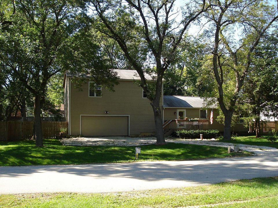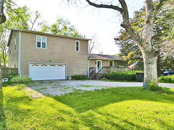 Open Concept Great Room with a wood burning stove and Kitchen. Kitchen features island and lots of cabinets. Dinette area leads to patio doors to fenced in back yard. 2 car attached garage. Main level laundry and half bath. One bedroom on main level and two additional large bedrooms up stairs with full bath. Municipal Sewer and well.