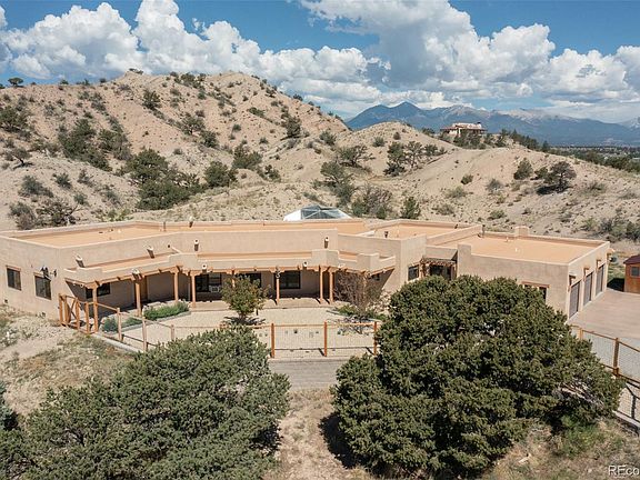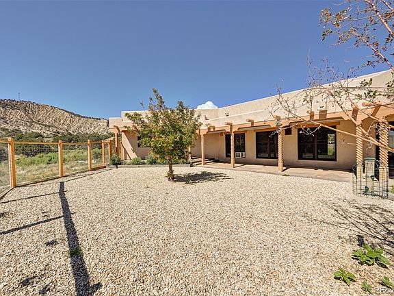 Beautiful custom Southwest style home! Close to town and very private, this 4 bedroom, 3 bath home features large rooms, hot water baseboard heat (2 separate boilers for each side of the house) and an open floor plan. The home sits on a private 4.9 acre site with a walled courtyard including a large deck and hot tub, grass area with gardens, and a spectacular 33 foot in diameter greenhouse complete with a Koi pond and huge Koi! The front is beautifully fenced and Xeriscaped for low maintenance. The attached 3-car garage is heated and there is an outside storage shed and dog run.