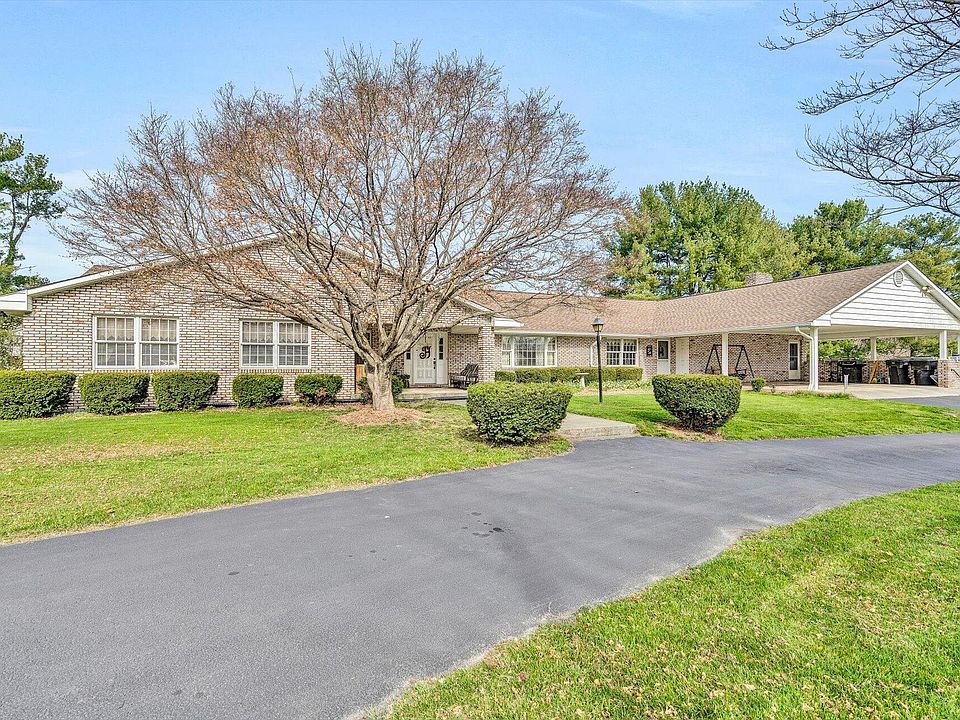 Unique, sprawling brick ranch with 3 separate living areas each with their own kitchens, baths, and laundry hookups. Perfect property for the buyer that is looking ofr a spacious house to accommodate extended family, multigenerational families, or in law quarters. The bedrooms, common areas and kitchens are spacious. Plenty of parking available with a circular driveway up & a 2 car attached carport, there is also a large parking area down and a garage under. You'll enjoy all the outdoor spaces including a deck, covered front porch and patios for cookouts, games, and outdoor rec areas. A large portion of the basement is unfinished for future expansion and offers lots of storage. This house is truly one of a kind.