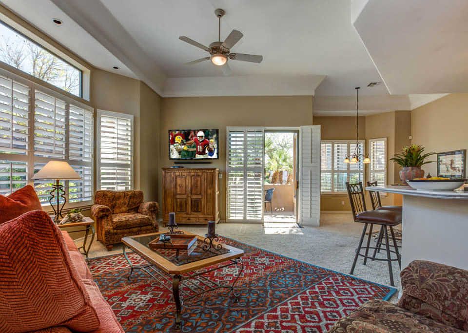Spacious and luxurious resort lifestyle awaits you in this open floor plan townhome.The property boasts 2 large bedrooms plus den,high ceilings and is light and bright.Gourmet kitchen features alder cabinetry, sleek corian counters and is open to living areas.Plantation shutters,crown molding complete the high end decor.2 car garage provides room for your convertible and golf clubs!Lock and leave gated community lifestyle with refreshing resort pool outside your back patio.Lovely corner lot with patio plumbed with gas for your grill.Walk to golf and all that Red Mountain has to offer.Welcome to the good life!