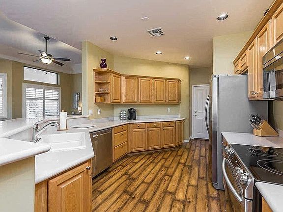 2 bedroom, plus den, open kitchen into spacious great room. 2 car garage with nook for storage shelves and garage tools. Home is across from the pool/hot tub and mailboxes. Home is in immaculate condition. Very quiet neighborhood. Gated community. Beautiful scenery!