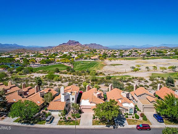 Great opportunity to find a single level golf course home with view of Red Mountain. 2 bedrooms plus a family room. 2 baths. This home has lots of architectural interest with gorgeous vaulted ceilings, pot shelves with indirect lighting. A huge corner fireplace. A great room that is open to the kitchen and dining area. Kitchen has new high quality Samsung Tuscan appliances. Split floor plan gives Master suite and front bedroom their own separate areas. Cozy family room. Tile roof redone (appx 2013). Built-up roof over garage, covered patio and front door area newly resealed (Feb. 2022). Enjoy boating & recreation at Saguaro Lake only 15 minutes away. 20 mins to Sky Harbor airport and Mesa Gateway airport. Convenient to restaurants, shopping, medical, golf.