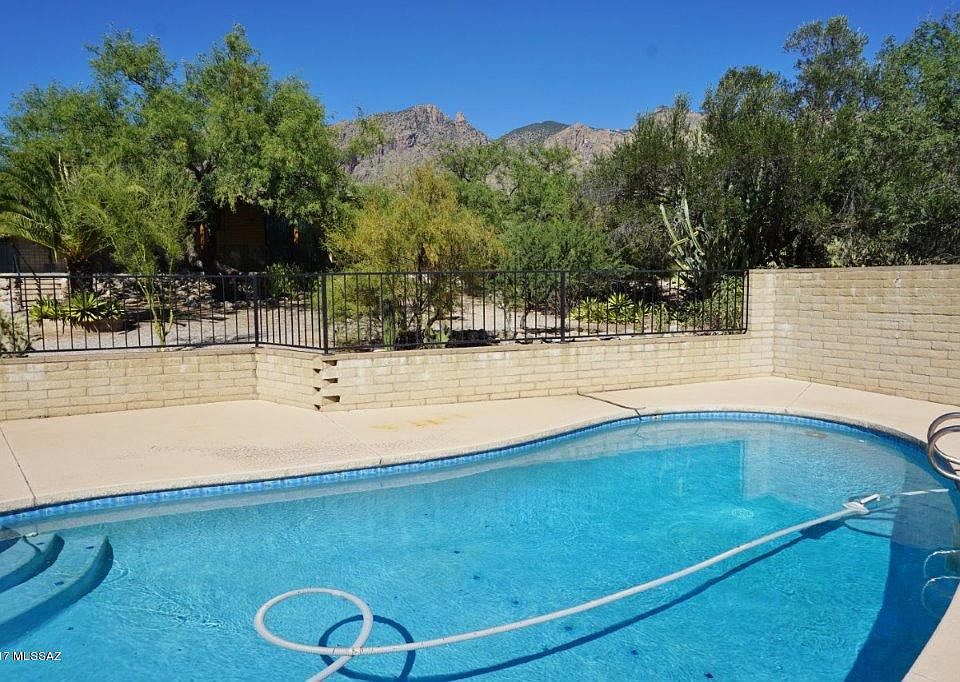 Catalina Foothills home with great views. Pictures tell the story with this lovely home. Newer AC unit and evap cooling units. Remodeled kitchen, ceramic flooring, newly painted and roof has been re-coated. Huge family room with built in library shelving. This home has been updated and well cared for! Back porch is length of home and faces south where the fenced pool area has super mountain views. NO HOA dues required.